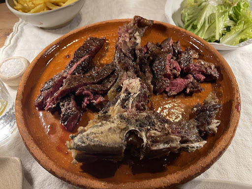 Read moreWhat can be said! I try to be brief. I arrived around 8pm after driving for many hours from san Sebastian as my last stop. On arrival the place looked closed, but soon i found someone and informed them i wished to dine there if possible. English seemed a problem even though they understood. After waiting 20 mins, which i do not really do, i saw that the chef was giving me a look over from behind the kitchen glass to see if i am worthy to eat there type of look! I thought, wow this place must be really booked up and full that they cant find a table? 2 mins later i get asked to follow one of the staff to a table. Going down some stairs and entering into a cave, which seemed cool for a second, only to notice there was hardly anyone inside. I think i counted 4 tables of 3 and myself! The rest was empty! Then i get presented with a menu, stating that the minimum must be one cut of 1kg of beef/ox with no combination and no alternatives + starters ! So i decided to go for the 1kg of “full flavoured ox” at 170 euros per 1 kg. After a short time i was presented with the cut of 1kg, in my opinion it was 250g of lean meat, 450g of bone and 300g of fat Anyways, i was intrigued to see what the big hype is about the “best stake in the world” so i continued. After a while i was presented with the cooked steak, fat take off to be made “crispy” and the rest presented to me. First bite, im heading crunchy rock salt not ox or beef. After clearing all the excessive salt off, i started to try to find out what the fuss was all about! The green salad of wilted lettuce or the left over tasting potatoes really were not impressive! I continued to eat the meat while i was listing with amusement to the next table who were vowing not to do this again and what a big mistake it was for them to drive from Leon to eat at this place. I held my laughter in as I have the same sentiment… “over hyped, over priced food in the middle of nowhere… not doing this again” after they ordered a lot of meat, starters and wine to wash the excessive salt down with. I simply asked for the bill, the waitress (one of only 2 for the whole restaurant) asked if the food is ok? I answered “ honestly… over salted” This is a perfect example of a place that is over hyped, awarded and rewarded by people who do not know what they are talking about only to create some kind of “elite spot” which this can not compare to the likes of others around the world or even Spain or portugal next door who would put this place to shame in quality and price. I would be surprised if they really survive as a restaurant for another year with this kind of attitude, quality and pricing towards punters! The sad reality they do not do justice to the amazing ox/beef they grow and slaughter for profits. As stated by the next table “over hyped, over priced, wouldn’t...