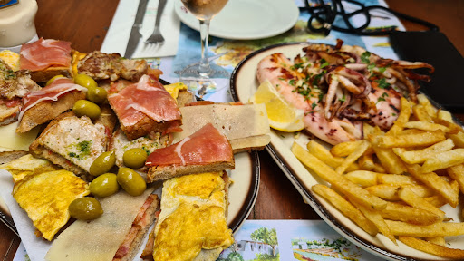 Food: Starters: I ordered Boquerones (fresh anchovies, marinated in vinegar, olive oil, and garnished with finely chopped parsley and perhaps a hint of garlic) This dish can often be overly fishy and oily, so is served with local bread. To my surprise I found the Boquerones extremely subtle, fleshy and utterly delicious. Typically I wouldn't wolf down a whole plate, for it's also a rich dish, but complimented with a red wine (yes, red!) I happily polished the lot off. They were the best boquerones I've had in years - and better than I recall them at Bar Anita. A delightful start. Mains: On advice of the staff, for the menu is relatively broad (meats, fish, pasta, pizza's - a typical spanish cafe, please everyone air to its design) I elected for the fresh squid of the day. Typically caught early in the morning and delivered fresh to the restaurant, it's served with chips, or salad, or if you ask nicely, both. I asked nicely ;-) I'd anticipated 1 or 2 squid, but as they were of medium size, was surprised by three. It should be noted that all portions at Bar Anita are generous! I ate the first two quite quickly and they were, ... they surpassed expectation! I guess being a 365-day-a-year "cafe", one expects "OK" food - it's typically secondary to the social occasion, the friends and family focus. However, these were better than that. Easily. I was then interrupted and had to pause, returning to the 3rd squid some 20 minutes later. I inwardly cringed at the thought of cold squid, but being the foodie I am, couldn't resist a nibble. It remained delicious! I scoffed the lot. Cheerfully. Dessert: two glasses of wine, starter and mains done, the interior of the restaurant buzzing with workers popping in for lunch, and families have a catch-up I decided to indulge in a dessert (not typical, for me) I erred to the in-house flao - a flan-ish 'cheesecake', moist, crumbly, with understated hints of anise and mint. It either does work, or it doesn't (too often the latter, so I was taking a risk) But this one did work. Fresh, subtle, if you like a rough cheesecake, thinner than elsewhere, with hints of anise and mint, it's a must have.