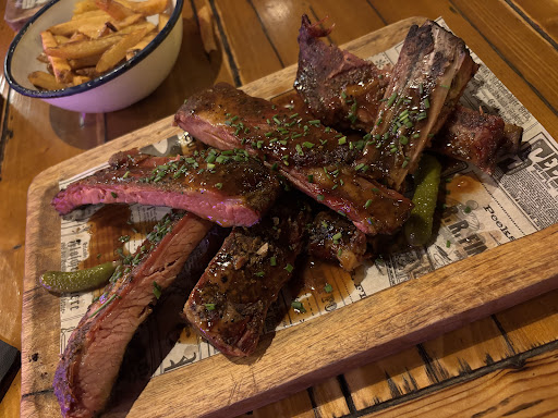 Read moreThe food here is incredible. My husband and I shared a huge beef rib and we’ve never tasted anything like it. The meat was so soft and tender and fell off the bone perfectly. We also had some chicken wings which were so smokey and delicious. The fries were hot and fresh and the macaroni was so tasty with some smokey pieces of pork added to the sauce. I particularly enjoyed the homemade habanero sauce. The flavour was so unique, I really wish they sold it in small bottles so as I could have taken some home with me. We shared a slice of cheesecake for dessert which was creamy with a really fantastic raspberry sauce. The staff were really nice and genuinely friendly. This place is a great addition to the island and we will 100% be visiting again. We’ve had barbecue all over the world including in the USA and Can Garage is as...