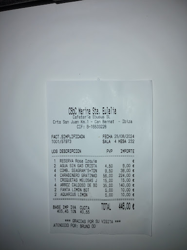 Our croquetas was served after an hour and the grilled fish literally came the next day at midnight, which obviously we cancelled.