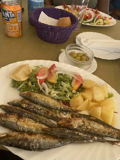 It is an amazing experience to eat there. Even with a bit of rainy weather. It's a bit remote but ample parking makes it easy. Food was just recided to us from memory and no pad to write it down. I tip my hat to the servers. It always impresses me. We ordered whole Dorada and whole sea bass. We didn't wait long (15min maybe and it was busy) It always makes me happy when a big plate arrives and a glistening fish with crispy skin is presented. On the side boiled potatoes and simple salad of iceberg lettuce and tomato, julianne carrots and red onions and of course lemon wedge. You dress it yourself with good olive oil and balsamic vinegar provided. No frills it's all about the fish and it should be imo. Once you dig-in your pallet is spoiled with flavour. Not sure if they do cook it I butter but the flesh tasted like it is. Both fishes were cooked to perfection. Crispy skin I mentioned before adores super moist, sweet and buttery flesh. Scent of salty water in the air and music from waves make the experience even better. All top marks! When I come back I want their t-shirt (not for sale at the moment). Unforgettable meal. BTW people on the far end of the bench had tuna steaks and were making all the right noises too when eating. Nothing more to add. Make of it what you want but I'm a very happy chappy to have eaten in...