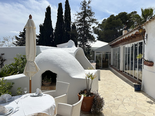 We loved this place. Even though the garden doesn’t have views, it was nicely done and we got a concert from the frogs in the small pool. The building with traditional decor is typical for the island and has good Ibiza vibes. The service was friendly and the prices affordable. We had the set menu that came with 4 different starters. My friend took a soup of green figues which was excellent. There were asparagus week so I took a asparagus soup as well and it was tasty. My cod fish with champagne sauce and prawns was perfectly cooked. The desserts were huge. I loved my selection of sorbets and the copa Romanoff was...