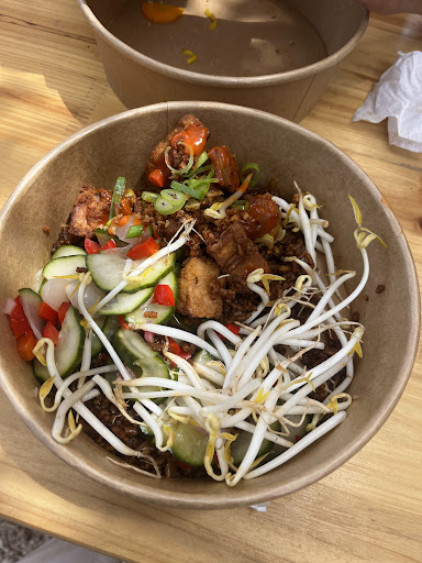 Read moreProbamos este restaurante de estilo take away indonesio y la experiencia fue muy buena. Me encantó que ofrecieran una opción vegana a base de jackfruit: estaba increíblemente crocante y lleno de sabor, ¡una delicia! Mi pareja se pidió el sándwich y también quedó encantada, dijo que estaba buenísimo. Lo único que no me convenció del todo fueron los lumpias; aunque estaban súper crujientes, el relleno era prácticamente solo col y se quedaban un poco cortos de sabor. Aun así, definitivamente lo recomendaría y sin duda volvería. Muy buena opción para algo...