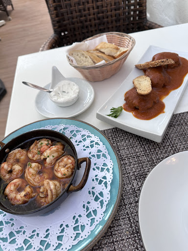 We tried to eat here the evening before and it was very busy, and rightly so. We ended up booking a table for the next evening and we were so glad we did. The staff booked us the best table at the front of the restaurant and greeted us like old friends as we arrived. We decided to have tapas but couldn't decide what to have and we were not pressured in any way even though they could have sold the table many time more during the evening. When we decided what we wanted the waitress took our order she advised us on what we should have and how much even though she could have made more from us ! The food was incredible. The fillet steak was wow, and the garlic prawns were something else! I had the potato croquettes which were beautifully cooked and so smooth inside. The spicy sausages were good but I'd have liked another couple . At the end of the meal the waitress brought us some bread to mop up the prawn and garlic oil- OMG! I would definitely go back again as it was an incredible meal, a beautiful view and a very chilled out atmosphere. I'd definitely recommend making a...