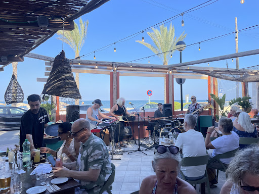 Read moreA real hidden gem on the island, catches the true Ibizan spirit of great food, music and location, right by the beach at the end of a curling strip of sand. We arrived to live music from a great band, followed by lovely chilled and eclectic music from DJs, and were even treated to a beautiful full moon rise over the bay. The food was fabulous, excellent value for money and you'd find much below this standard at twice the price around the island. We had a range of dishes between us, pick of them was ceviche and the burrata salad. The ceviche was tangy, fresh and just perfect. The burrata brilliant, with flourishes and touches that rise it above the normal. Of note too were truffle fries. Service was fast and friendly, despite being very busy and having a large group, everything was quick and efficient, with drinks and food arriving very promptly. I can highly recommend a stop at this place, it’s worth a detour and hunting out from the usual fare. You may even end up like us, dancing away at the end of the evening long after the meal has finished – a perfect place to hang out at for longer than just a...
