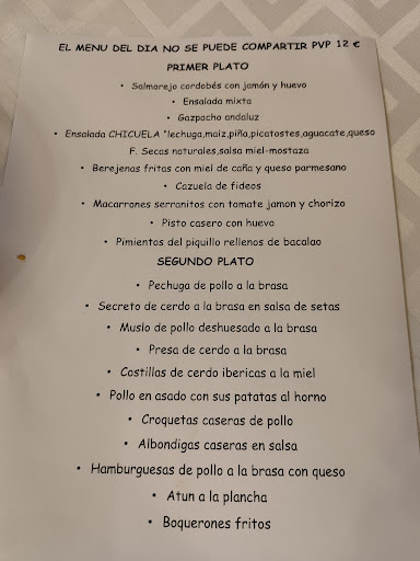 Read moreGran sitio para almorzar al mediodía. Sitio amplio y agradable. El servicio excelente. Tiene menú del día por 10€. Gran variedad de primeros y segundos. Incluye bebida y postre. Platos bien hechos aunque clásicos, en un restaurante de menús. Si no quieres cocinar y te pilla cerca, es más q recomendable. Te encantará. Yo seguro q volveré. Recomendable la ensalada la Chicuela y el...