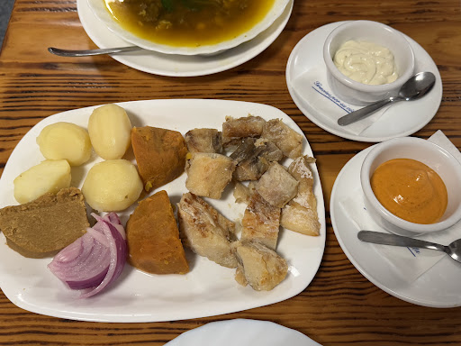 Read moreAyer 30d julio hice un pedido de sopa un bocadillo de vuelta especial y una sancocho d pescado y solo se podía comer el sancocho,pq l sopa avinagrada el bocadillo lleno d aceite y el pan por o parte d abajo blandurio llevo desde ayer intentando llamar y no siquiera cogen el tlf y para colmo m sentí mal pq pago y m dice el camarero latino toma l bolsa y mete tu las cosas q m quedé flipando yo pago para q m atienda bien y solo d lo q pedí pude comer el sancocho y no es o primera vez n volveré más solo mañana a enseñarle l sopa y pedir l hoja d reclamaciones pq...