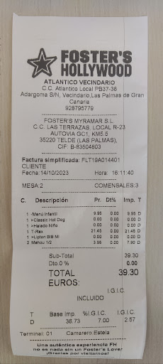 Read moreLa experiencia, fue muy negativa y desagradable. Al principio los empleados se mostraron amables. El que nos atendió se veía muy inexperto y fuimos comprensivos por ello. Nos dijo, que nos agradecería una buena reseña y nos mostró el código QR correspondiente, a lo que accedimos, también amablemente. Le pregúntanos sobre otra publicidad que figuraba, sobre un descuento del 10% y nos explicó que nos debíamos registrar y así lo hicimos, pues probablemente volveríamos, para probar otros platos que nos llamaban la atención. Confirmamos con él, que así era correcto para el descuento. Pedimos un costillar barbacoa ibérico, etiqueta negra. Según pueden comprobar por la carta y por el ticket, el costillar debería venir cubierto de paleta ibérica crujiente y cebollino y acompañado de: Salteado de patatas asadas, tomate cherry, champiñones de Portobello, espárragos y cebolla morada. Como pueden comprobar en nuestra foto, no tiene nada que ver con la que anuncian. Simplemente pusieron unas pocas patatas fritas congeladas. Las costillas estaban demasiado saladas, pero tiernas, lo único positivo de la comida, por lo que decidimos intentar disfrutarlas acompañando de suficiente bebida y no incomodar al empleado. Al ver la cuenta, le dijimos que no aparecía el descuento del que habíamos hablado. Increíblemente, nos contesta que se lo tendríamos que haber dicho. Nos quedamos alucinados. Al recordarle de todas las veces que le dijimos lo del descuento, nos dice que es que además él es nuevo. Le mostré una expresión de asombro y acercó su cabeza hacia mí diciendo: "Sí soi nuevo, sí soy nuevo". Le dije, que lo menos importante era el descuento, si no, su actitud inadmisible hacia un cliente y que no esperara esa reseña positiva que nos pidió. Pues no la ponga, dijo e insistía en que era nuevo y seguía increpando con los mismos argumentos ridículos y muy insistentemente y desagradable, por lo que decidimos dejar ahí el asunto e irnos. Por supuesto, no volveremos más y no pedimos la hoja de reclamaciones, aunque tenemos todas las pruebas claras, pues ya a mi mujer le comenzaba a molestar el estómago, pero un personaje (por emplear un calificativo suave), como este tal Domingo, según figura en el ticket, no por su inexperiencia, si no, por su carácter y trato totalmente ilógico, desagradable e injusto, no debería de estar de cara al público. Espero y supongo, que no dudará mucho o con toda probabilidad auyentará a otros clientes, como hizo con nosotros. ¡Suerte para el...