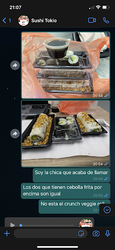 Te tienen el pedido listo en 10 minutos (que sospechoso…..) y ordenamos 40€ en sushi!!!! Ya habíamos visto lo malo que es este lugar pero es el único en vecindario.