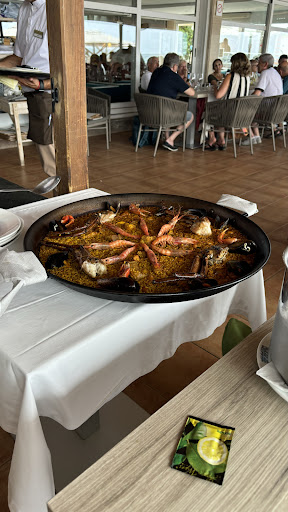 Read morePerfecto sitio para comer frente a la playa. Pedimos una paella de marisco para 6 y todos quedamos satisfechos tanto de sabor como de cantidad, incluso sobró una ración la cual me pusieron para llevar y volví a disfrutar al día siguiente. No pedimos entrante, solo pan, alioli y aceitunas. Muy bien atendidos por el personal, sobre todo por Pedro José y Maria, también por otra chica de la cual que no sé su nombre. También el precio estuvo muy bien, algo más de 30 por persona que para lo bien que estuvo y lo que pedimos (a la paella hay que añadir 2 botellas de vino, aguas, caña, cafes y un par de copas) no está nada mal. Y unas vistas fenomenales....