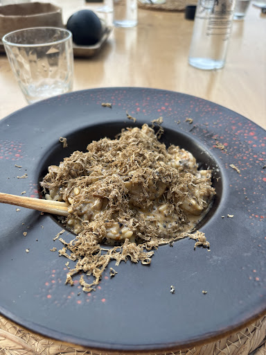 Regarding the food itself, while taste is subjective, I must echo a previous comment: the combination simply wasn't working. The prawn ravioli, for example, was inexplicably and extremely sweet. Compared to other restaurants in Mallorca, and indeed restaurants in general, this was one of the worst meals and overall dining experiences I've had.