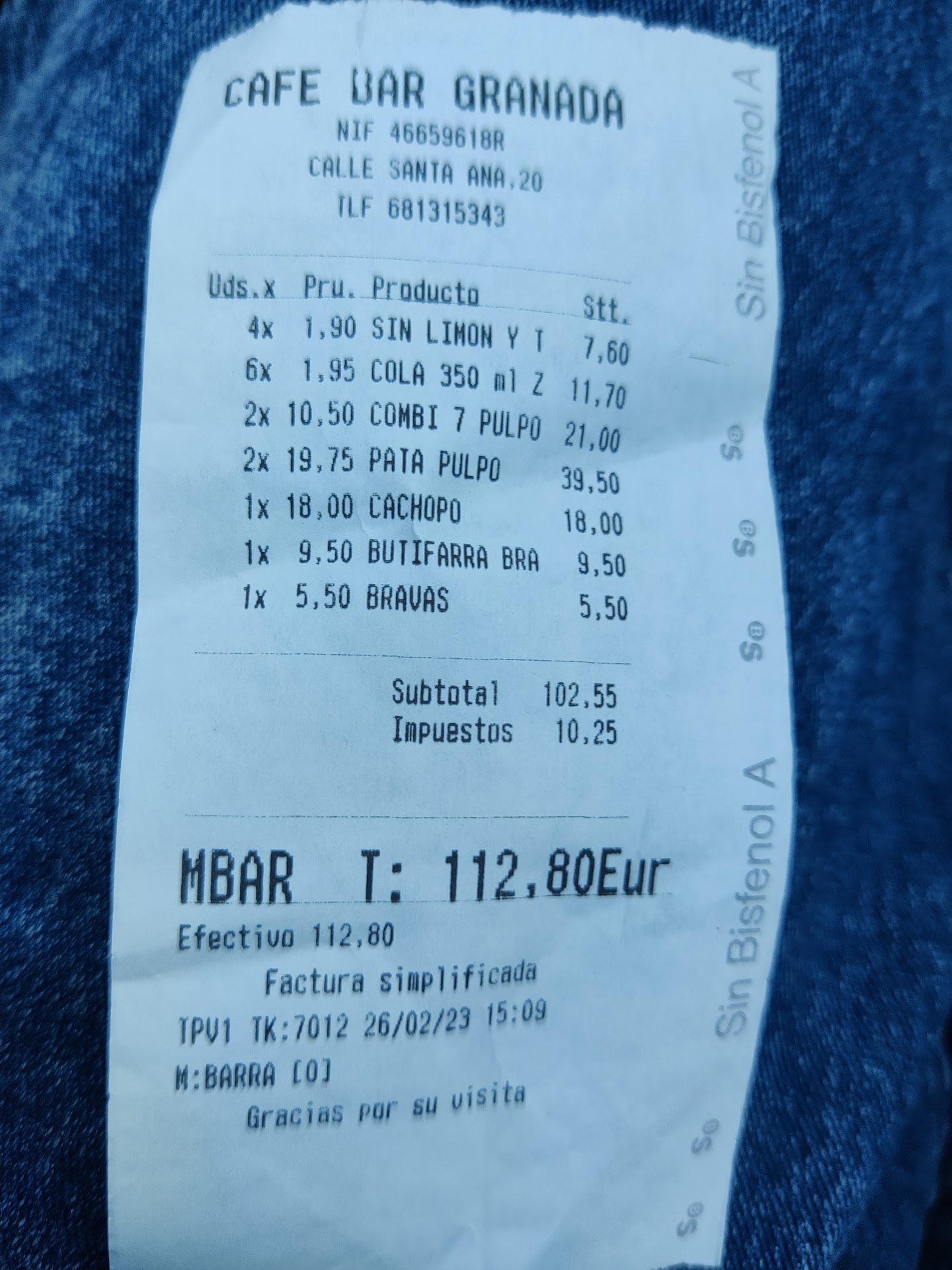 Read moreUn sitio familiar , la gente amable y abierta. La comida , no solo es buena , sino que estás pagando a precio de bar , lo que la misma calidad te comedías en “píncela sofia”. Cuando me coma el chuletón a la brasa, las patatas de pulpo a la brasa, la “butifarra” de más de 2 palmos o puedes pedir una modestia tortilla de atún. Cuando vuelvo añadiré fotos de todo lo que he...