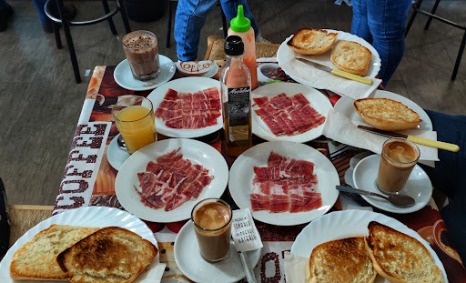 Read moreEl mejor lugar para un desayuno ibérico, tiene solera, buen ambiente y una atención al público espectacular. 100% recomendable salir de la autovía en Santa Olalla del Cala y degustar sus desayunos, además, venta de jamones, quesos, aceite de oliva 🫒 virgen extra de cosecha propia y toda clase de embutido ibérico al corte...