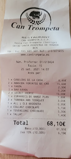 Read moreFuimos recomendados a hacer una calçotada con unos y la verdad es que me sorprende la valoración general de Google, el establecimiento bastante viejo y un poco abandonado, telarañas. El servicio bastante apático, la comida los calçots aceptable, la salsa normalita, lo peor de todo la parrillada de carne de mala calidad, el cordero y panceta seco y frío, la butifarra negra cruda, y lo único que se salva es la butifarra. La cantidad justita por 35€ por menú. Además no hay opción de pedir 2º Alternativo si no te gusta la carne. La crema catalana aceptable. Espero que esta reseña sirva para los que...