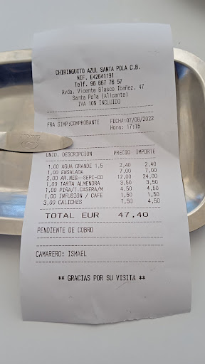 This is the second time that we have been disappointed with the service and treatment. Food over salted, waiters bringing food we are allergic to, noise levels, bad service etc… We have been coming to this restaurant since it was in East of Santa Pola before it became our local restaurant. Sadly, today is the second time that they have charged us for chupitos (tiny glasses with liquor that is usually offered free to customers) it’s not the 1.50€ charged but more the feeling that we are not appreciated as customers or treated the same as others. We spend around 100 or 147€ per week during our 6 week summer holiday and during the rest of the year when we are here, we also come as they open weekends. Unlikely to return, they obviously don’t care for the frequent customers regardless of knowing us by our first names. Disappointed is an...
