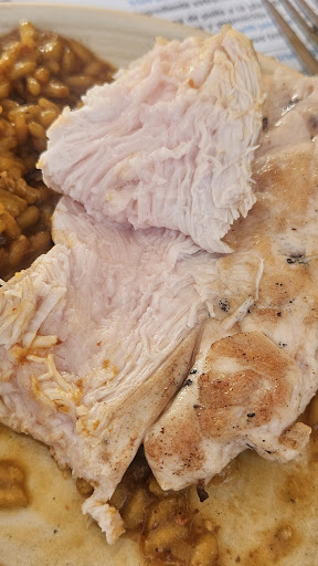 The fries were clammy and not enough (not that we would want more), the pork tenderloin and the chicken filet were tasteless, the rice was way too salty.