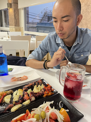 We came to the restaurant, sat down - waitress passed me several times, looked at me directly, stand next to me drinking cola and never came by until I stand up and toke the menus. Food - horrendous. Small portions and i have been unable to eat anything other than calamari’s. Too salty, too oily, just bad. I have been eating in loads of places. I’m not picky. But that was one of the worst experiences in my life. The only tasty thing was dessert - although it was straight from mercadona. Then we finished our main dish, they looked at us and again - 30 min waiting with dirty plate on the table. Then they came asking for a dessert when we looked very annoyed. 😡 Staff were nice when they were talking to us but in general they didn’t...