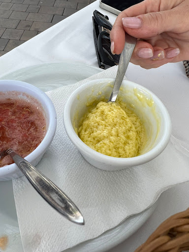 Okay-ish food, my wife and I ordered simple Spanish dishes, some patatas bravas and "gambas al ajillo" that was more like an oil soup, a seafood paella, which tasted good, little to no seafood in it, also ordered a Chardonnay that came with cork remains in the glasses, and when we told the waiter, he rolled his eyes and ignored us for another 20 minutes. Later, we asked for desserts. I ordered a mousse, and my wife ordered the cheesecake. Hers was okay, but my dessert tasted like cardboard. I wouldn't be surprised if it were premade somewhere else, awful waiter, such horrible manners, and less to say the hostess, so rude. We came other times, and there was another girl, Quiara, if I'm not wrong, I didn't see her again, how disappointing to not see the only sweet person there.