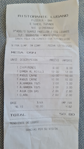 Read moreWe went here for a return visit, 5 of us dined, 3 meals came out after about 40 mins, then 25 mins later the 4th, then 15 mins later the 5th, I complained to the server who begged us not to complain as the owner would take it out on him, then the manager came over who also asked us not to complain because of the owner, then the owner came over, he was very rude, screaming and shouting, using profanities, he was threatening his staff and us as customers, the only reason he did not wake up on the floor is my visa would have been revoked, I paid the bill as he was upsetting children sat around us, this guy should leave his staff to run the restaurant and he should do something away from the public, there are plenty of other places in Santa Pola to eat, so this place can be avoided, we sat there for around 2 hours just watching food getting returned...