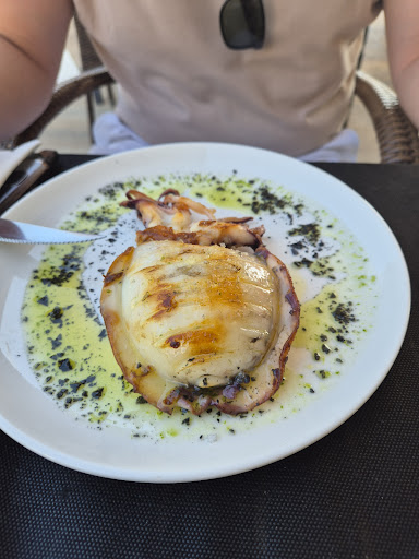 Read moreHemos probado pocas cosas de este sitio, pero dejo aquí cuatro estrellas porque es un deber probar si se viene a Santa Pola los Mejillones a la brasa y el calamar de Bahía. Jamás probé unos mejillones así…, y llevo muchos probados. El ambiente es muy agradable con música agradable en la terraza porque al lado tienen una zona para ir a tomarse una copa. Algo que no me gustó es la escasez de mantel…, y lo explico. Ponen caminos de mesa en lugar de manteles, que además de moverse con el viento, en zonas de humedad la mesa es mucho más agradable si está cubierta entera y no te quedas pegada. Además en nuestro caso no estábamos sentados uno enfrente de otro, y en lugar de poner dos caminos de mesa solo nos quisieron poner uno, y teñimos que comer torcidos. Una camarera jovencita, morena, con trenzas… súper bien! Y también una mujer de más edad que fue amable al recibirnos. A otros camareros les falta experiencia y formación. Cuando pides un vino no te lo sirven en mesa! Es decir, te traen la copa servida. Lo normal es ver la botella del vino que has pedido y que no pueda ser cualquiera. En cualquier caso, la comida, increíblemente buena y una...