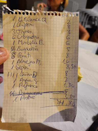 Read moreLamentable! Hemos ido a cenar una familia de 7 personas recordando unas riquísimas sardinas del verano pasado. Decepción total. Las 2 primeras docenas saladísimas y demasiado hechas, nos las han cambiado y ha quedado patente la pésima calidad, sardinas de varios días... esperábamos comer unas sardinas frescas, aunque eran pequeñas que estuviesen buenas...nada más lejos; una ensalada grande, decepcionante, llena de agua, lechuga iceberg, migas de atún de pésima calidad y para aliñar 1 cartucho de aceite como para una ensalada individual... hemos tenido que pedir otro, habría sido correcto poner una botellita de aceite para esa función, unos calamares impresntables, pálidos, sin a penas rebozado, lo único rico el pan recién tostado y el Ali oli. Para no volver porque no hemos visto ningún interés en servir un plato bien hecho y fresco. Nada recomendable. Tras nuestra queja nos han hecho un pequeño descuento en la cuenta, no era eso lo que queríamos, sino cenar bien y pagar lo que...