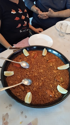 Las apariencias engañan (por eso ambiente 4 estrellas). Un restaurante de toda la vida donde aparentemente es un sitio normalito para comer un menú. Todo cambió cuando llegó la hora de comer, empezamos con unos entrantes generosos y muy buenos (ensalada, calamares y boquerones fritos, croquetas de jamón, queso frito con mermelada y pan con tomate y allioli) pero luego llegó lo mejor, el arroz (pedimos el de tropezones para 6). El mejor arroz que he probado, muy sabroso, bien de cocción, al punto perfecto de sal y con una cantidad de tropezones considerable. Ya estábamos bien servidos pero tras escuchar la extensa carta de postres, probamos la tarta de queso, el tiramisú, la de 3 chocolates y la de pistacho (impresionantemente buena la última). Además de que la comida estaba muy buena, de 10, (el queso frito y las croquetas, lo único que no impresionaba de sabor, un 6’5), la atención de los camareros era muy familiar y respetuosa. El precio total fue de 115€, pero teniendo en cuenta la cantidad y la calidad de la comida y el buen servicio, dejamos una propinilla considerable de agradecimiento. Calidad-precio, el mejor de Santa Pola y alrededores, si alguna vez vuelvo, haré que mi viaje coincida con la hora de comer para...