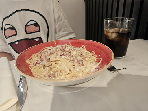 Read moreРесторан не працює щодня. А всього декілька днів в тиждень. Місце в ресторані потрібно бронювати. І якщо ти хочеш змінити кількість людей - це не можливо, тому що вони не працюють напередодні. Їжа смачна, приготування карбонари і риби було в межах дозволеного- 25-30 хвилин. Офіціант підійшов через 3 хвилини після того, як ми взяли меню в руки. Ми попросили ще 5 хвилин, щоб визначитись з їжею. Але офіціант не підійшов ні через 5, ні через 10 і навіть ні через 15 хвилин. Хоч ми усім виглядом показували, що готові зробити замовлення. Я покликала іншого офіціанта, але він не підійшов. Через 25 хвилин очікування у нас прийняли замовлення. З напоїв замовила вино, яке наливали при нас і це великий плюс. Офіціант був ввічливий і вів розмову з уточненням щодо нашого замовлення. Це теж признак гарного сервісу. Їжа смачна. Але бажання її їсти зникло, коли по білій скатерці почав бігати тарган. Здається в цьому місці немає бути такий високий прайс, тому що рівень закладу - звичайне кафе, але аж ніяк...
