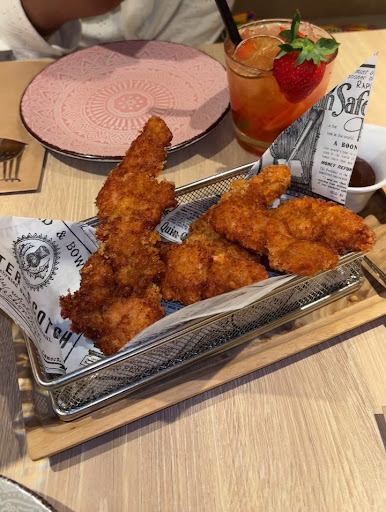 Read moreJe mets 2 étoiles pour la cuisine: ce n’est pas mauvais, mais 16 euros pour un burger surgelé qui doit coûter 2 euros à la confection ( je ne compte pas le salaire du personnel) c’est vraiment excessif. D’autant qu’on a entendu en cuisine de ne pas dire que c’était du surgelé mais de la viande fraîche. Mes parents m’ont appris à terminer mon assiette même quand je n’aime pas… là j’ai laissé 2/3 de mon hamburger. Libre à vous de trouver ça bon mais au rapport qualité/prix c’est de l’arnaque. Venu 2x au restaurant, chicken fingers appréciés par ma fille, salade pas mauvaise.