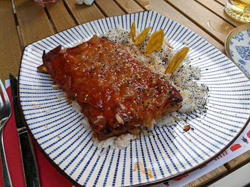 Rating is only based on the menu del dia, maybe the individual menu is the way to eat here... The starter felt very basic (yes good ingredients, but salmon and avocado on a store-bought crostini was an underwhelming start for a menu that in hindsight oversells), wine was sub-par being that we're in Spain, noodles weren't any better than you could do simply at home (lots of soy sauce), and they don't serve coffee (which is pretty standard for menu del dias in town).