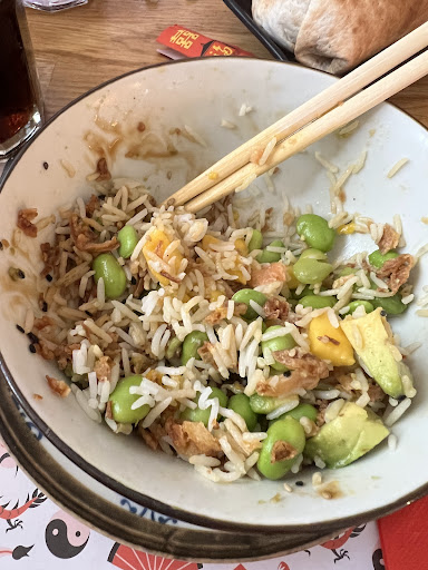 De acuerdo estamos en un restaurante imitación de comida asiática (y digo imitación porque llamarlo asiático directamente es un insulto hacia toda la enorme gastronomía asiática, y no se lo merece) donde el arroz es uno de los ingredientes principales, pero una cosa es eso y otra que se componga básicamente de arroz, para llenarte pero no disfrutar