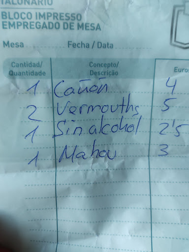 Read moreDe VERGÜENZA . Pena de haber ido sólo, para llamar a la Policia y haber puesto una denuncia por contratar un menú, habernos servido lo que les ha dado la real gana y encima haber pagado. Les cuento un poco para que se hagan una composición de lugar y de paso se rian un poquito. Reservamos mesa para comer un menú de tres entrantes a compartir cada dos personas , elegidos de entre 13 primeros platos y un segundo plato a elegir de entre tres opciones. Lo primero hay que decir que a la media hora de estar sentados nos ofrecen servirnos la bebida, a la hora y media , sin habernos preguntado nada , nos sacan tres platos de jamón serrano, comentamos al primer camarero que nos atiende que no habíamos elegido nada del menú que habíamos contratado. lo consulta en la cocina y nos dice que eso es lo que hay, seguidamente nos da a elegir de entre cinco platos lo que queríamos para completar los tres entrantes. Una vez tomada la comanda de los entrantes, la segunda ración sale fría de cocina tras media hora más , quien iba a suponerse que la elaboración de unas simples rabas iban a llevar tanto tiempo, bueno y así lentamente fueron saliendo los siguientes entrantes. La segunda parte llega con la elección de los segundos platos pues nada que ver con lo que era el menú inicial y por el que hemos pagado. Hemos tardado en comer casi CUATRO horas de reloj, la atención PÉSIMA por parte de los CUATRO camareros que nos atendieron y si al menos, la comida hubiera sido buena o casera, pues las setas de bote, las croquetas congeladas y el entrecot se difuminó pues no estaba, al igual que el bacalao al ajo arriero, que tenía un bote entero de tomate. Sin comentarios. Eso sí, el local está justo enfrente del campo de Racing. Pero eso ni quita el hambre, ni consuela y lo peor es que encima, pagar por eso es de traca. Animo así vais a cerrar el chiringuito muy rápido, perdón , en todos los chiringuitos que he comido a sido de largo...