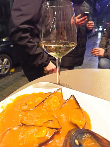 🍴 Qué probamos: • Rabas, muy buenas, de las clásicas de la zona. • Una copa de vino, acompañada con detalle de aceitunas mientras esperábamos.