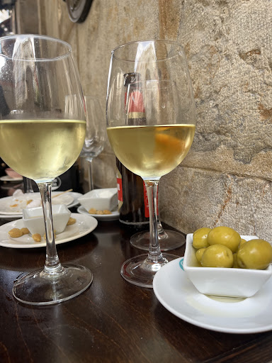 El local dispone de mesas interiores, exteriores y barritas en la fachada perfectas para apoyar un vino o una caña al paso. La edad media de la clientela rondaba los 40-65 años, lo que nos dio la sensación de ser un lugar clásico de pinchos, de los que mantienen tradición.