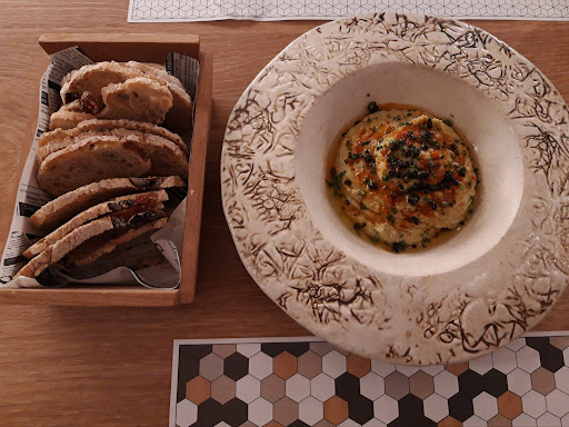 Read moreSe agradece encontrar un sitio así en Santander, con una propuesta ligeramente moderna (sí, en Santander puede y debe haber cosas modernas, por mucho que le duela a María Pombo y secuaces), con guiños divertidos y miradas a otras latitudes... Pero claro, seguimos estando en Santander y el riesgo, a mi parecer, está demasiado "controlado". El huevo frito tiene chispa y te pide mojar pan; el hummus de pistacho y aguacate está rico pero pelín plano para mi gusto, con la astringencia y el toque ácido tan característicos de un hummus demasiado rebajados (sí ya sé que no lleva los mismos ingredientes pero lo eché en falta, leñe); los ravioli de gamba roja, sabrosos e intensos pero la salsa que los acompaña transita por lugares demasiado comunes. Los tacos de merluza, espectaculares! Ligeros, crujientes y jugosos aunque con un exceso llamativo de cebolla crujiente. El rodaballo "echo trocitos" es divertido, sabroso y sorprende su emplatado. Y la molleja, de textura pelín correosa pero sabrosa. El croissant con nosequé, bueno, un poco decepcionante. Lo que sí me pareció es que los platos llegaban un poco fríos a la mesa: en la molleja, al final, esa falta de temperatura dificultaba un poco el poder cortarla y masticarla. El servicio, impecable. Un profesional de la hostelería formado y que disfruta de su trabajo siempre es una parte muy importante de la experiencia pero solo nos damos cuenta con los "tiraplatos" que ni te miran a la cara. Gracias al hombre que nos atendió durante todo el servicio. Y respecto al ambiente: pues estamos hablando de Santander... pero ahí la gerencia del negocio poco puede hacer, más que lidiar con l@s STV´s! Paciencia con elles! Os invito a que arriesguéis un poquitín más en el aderezo de algunos de los platos ;-) Sin...