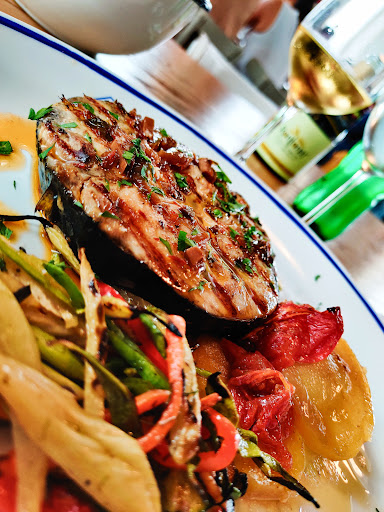 Al final, me decanté por un plato de pescado: un rape a la plancha que resultó ser lo mejor de la comida. Estaba jugoso, perfectamente cocinado y acompañado de unas deliciosas patatas panaderas y verduras salteadas. Este plato fue, sin duda, un diez.