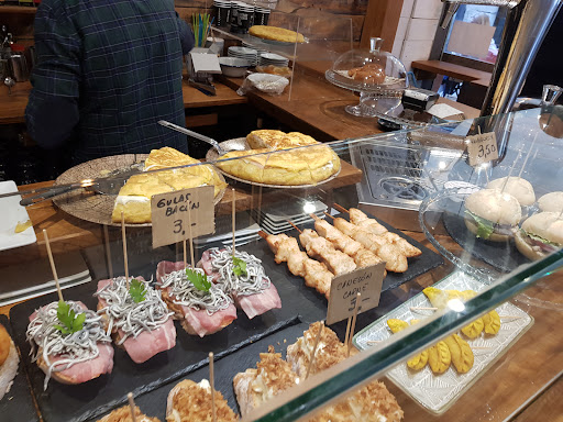 La experiencia, en líneas generales, fue correcta pero no especialmente destacable. Pedimos gyozas de verdura, que llegaron prácticamente frías y sin un sabor diferenciador que hiciera pensar en elaboración propia. También probamos un pincho de musaca, con mejor resultado que las gyozas. La carta ofrecía bastante variedad, además de platos del día, aunque en nuestro caso íbamos de tapeo para conocer más locales de la zona.