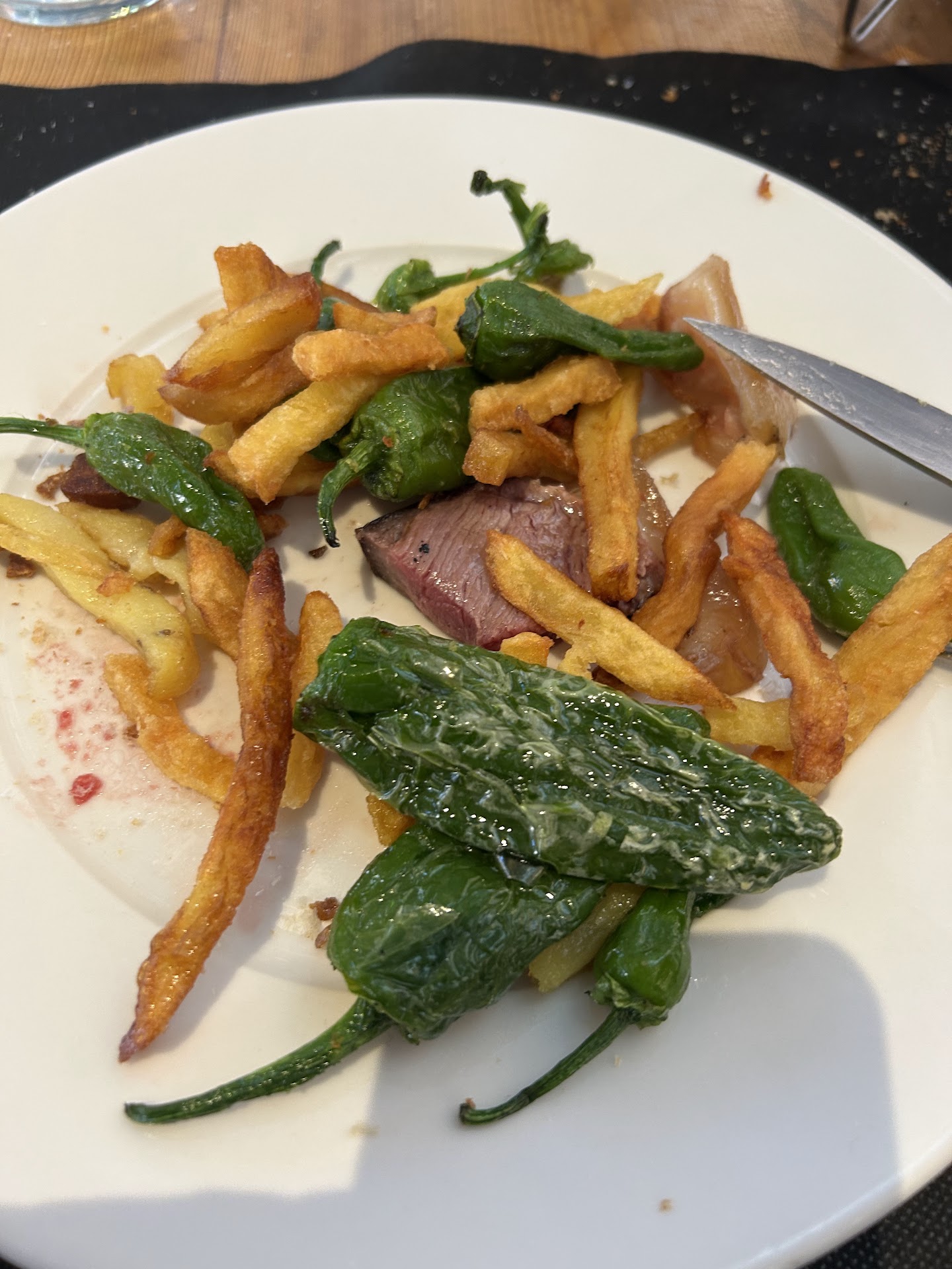 Read moreBueno, después de tiempo escuchando de este sitio, nos hemos decidido a probarlo. Me parece un quiero y no puedo, me explico , intentan ser algo parecido entre un restaurante antiguo y una sidrería. Es a un local grande, pero le falta amplitud , no hay intimidad entre las mesas, teníamos mesa reservada, bien. Nos lleva una persona a ella, nos sienta otra, nos da otra persona la carta de vinos, pero no la carta del menú/carta. Un rato después nos preguntan a ver si queremos agua y si nos hemos decidido por algun vino. Sin elegir la comida???? Elegimos unos entrantes, croquetas, bueno, decentes. Torreznos. Una cazuelita con pedazos de “torrezno” cortados sin pena ni gloria, morcilla. Pasable, con patatas, frita sin mas Y un puding, estaba bien, servido con una mahonesa mejorable y pan tostado. Agradable al paladar, comestible. De plato fuerte dos chuletas, nos las presentan en la mesa antes de cocinarlas. Tres kilos las dos. Bueno, las temperan y marcan en una parrilla a la brasa y ponen en la mesa dos piedras con un hornillo de alcohol. Particularmente no me gusta nada eso, salen humos y saltan grasas. En la mesa hay que servir las cosas para comerlas, no para hacerselas uno mismo. Pusieron platos calientes, buen detalle. Las chuletas fileteadas, la guarnición muy deficiente. Pimientos del pais y patatas fritas . Frios. Los pimientos eran pasables, pero las patatas no. Eran frescas, bueno, lo fueron, sabian a almidón como si hubieran estado cortadas de un par de días, y encima nos las pusieron también frias y de dos tandas, es decir, les habían sobrado algunas y completaron el plato con patatas de otra fritura, estaban unas medio quemadas y otras frias. Bastante mal complemento para casi 50 euros el kilo de chuleta. Un pequeño problema con el vino, quizá un malentendido, pedimos un rioja y sirvieron un ribera de duero, cosa sin mayor importancia, solventada. También un albariño, bien servido , con su cubitera y atención . Para terminar con el carro de los postres. Completos, caseros y bien explicados. Es de destacar el servicio de los camareros, había bastante gente y nos atendieron con mucha educacion y celeridad . Hemos comido bien, pero en concordancia con el precio y esos detalles que he comentado anteriormente. Pierde bastante por una nadería. Por otra parte, el aparcamiento perfecto, sin ningún problema justo en...