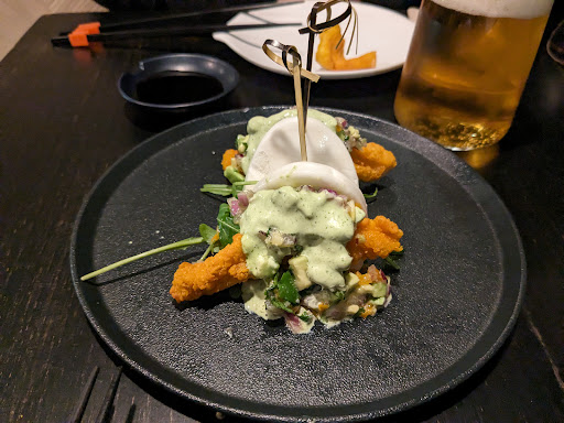 Read moreFuimos a comer dos personas. Local acogedor y personal amable. Pedimos para compartir: unas gyozas de ají de gallina (ricas, 8,90€ y porciones adecuadas). Pan bao de lacón muy bueno y cantidad generosa., 7,90€. Había tanto lacón que era hasta difícil comerlo. Salsa sabrosa y pan bao tostado. Unos rolls sin arroz denominados al sur del mundo, 13,50€, a base de langostinos, queso crema y aguacate. La mezcla de sabores muy bueno. Ingredientes totalmente caseros, partidos y elaborados en el momento. Me encantaron y sin necesidad de que contengan arroz, algo muy inusual de encontrar en este tipo de establecimientos. Y por último unos rolss nikkei de tartar roll a base de salmón, cebolleta, lima y aceite de sésamo cubierto de aguacate y coronado con tartar de langostinos, 14€ la ración. Estos ya tenían arroz y también muy buenos, de los mejores que hemos probado en Santander destacando nuevamente la presentación, la calidad de los productos, su elaboración casera y en el momento, el arroz no estaba tan aglutinado e insípido como en otros sitios, con fusión de sabores rica y la lámina de aguacate que lo recubría fina y sabrosa. Para terminar unos mochis rellenos de mango que estaban deliciosos. Acompañamos la comida con vino rioja, Glorioso, a 14€ la botella. No tienen más selección de vino tinto que éste, aspecto que sí sería conveniente mejorar sin dilación. En total, 62,80€ la comida con el vino incluido. Un acierto de comida y deseando...