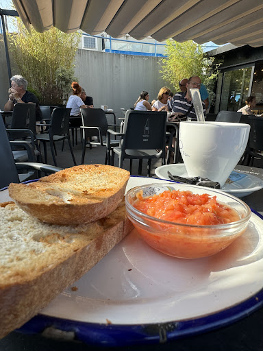 Tienen un gran variedad de opciones, si punto fuerte es la parte dulce. Donde puedes elegir desde opciones más clásicas como cruasanes, palmeras, galletas, milhojas, tartas… a creaciones de dulces menos vistos con coberturas o rellenos muy apetecibles. Sin embargo, la parte salada brilla menos, no por ello tienen poca variedad en general, puesto que tienen pinchos de tortilla, focaccia, empanada, cruasanes rellenos, tostadas… Y aquí voy a hacer una mención especial, ya que me llamó la atención que su tostada ÚNICAMENTE pudiera ser de tomate o mantequilla y mermelada, me pareció demasiado básico y que podría tener más variedad dado que en otras elaboraciones utilizas productos que puedes poner en una tostada. Nosotros optamos por: Tostada de tomate: Sencilla y correcta, se sirve en dos rebanadas de pan artesano con tomate natural y envase aceite y sal (opcional, para hacerla a tu gusto). Cruasán de jamón de York y queso: Correcto balance entre la cantidad del relleno salado y el toque dulce del cruasán casero. Pincho de tortilla de jamón y queso: Tamaño de ración considerable acompañada de pan artesano. Le añaden una fina capa de mahonesa bajo el jamón York y el queso que cubren con otra fina tortilla. No es espectacular pero la patata está bien cocinada, el relleno no está seco, más bien es fluido. Tarta de queso: Apta para todos los públicos, con base de galleta y una te tira suave que no llega a ser cremosa como tal, pero se siente ligera. Con un ligero toque de limón.