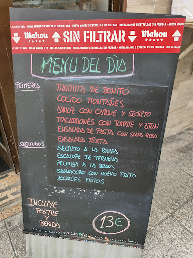 Went on Saturday and they had Menu del dia at 13Euros. It came with an appetizer, entree, dessert, soft/ fresh bread, dessert, wine and water. There was also a steak entree special which were very well priced, meat was fresh, and portions were good. They turned out to be the hilight of the meal. Fries were all soggy and not crisp. Menu del dia quality was not very good. The rice appetizer had a lot of seafood and good flavor but was soggy. The entree portions for menu del dia were small. Steak was tough and rubbery. The owner is super nice and friendly. Waitresses were all very kind and patient trying to explain the different menu options to us. Restaurant was busy so best to reserve...