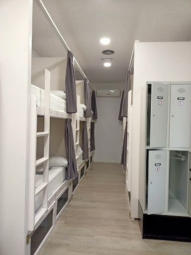 The host was very friendly and welcoming, and allowed me to keep my luggage in the hostel for a couple hours after check-out. The room is modern and well-maintained, and in the shared dorms there is a light, a privacy curtain, ample (free, locked) storage and a plug socket by the bed. The bed is also comfortable enough for a good night's rest. There wasn't much of a hostel vibe when I was there (it was mid-week), but the shared space is large for a hostel of this size. Bathroom facilities are also clean and modern, with more than enough showers for the number of beds.