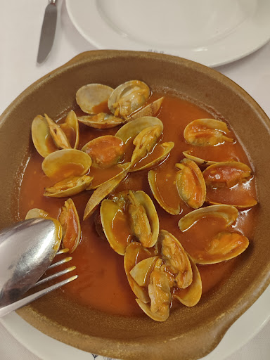 The restaurant offers a variety of seafood options, including fish, shellfish, and other local specialties. Some popular dishes you might find on the menu include grilled fish, seafood paella, mariscada (a seafood platter), and rabas (fried squid rings), gambas gabardinas among others sea food specialties. They also serve traditional Spanish dishes and have an amazing selection of wines and beverages to complement the meal.