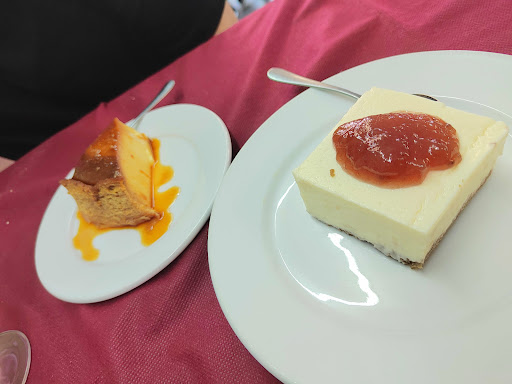 El broche de oro fueron los postres caseros: la tarta de queso y el flan, ¡deliciosos! Cada bocado nos hizo sentir como en casa, con ese toque especial que solo se encuentra en los lugares de toda la vida.