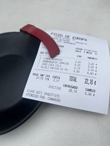 Me cobraron por dos refrescos y una hamburguesa con patatas 22€… y el tema no es el precio en sí mismo si no el desglose y la experiencia.