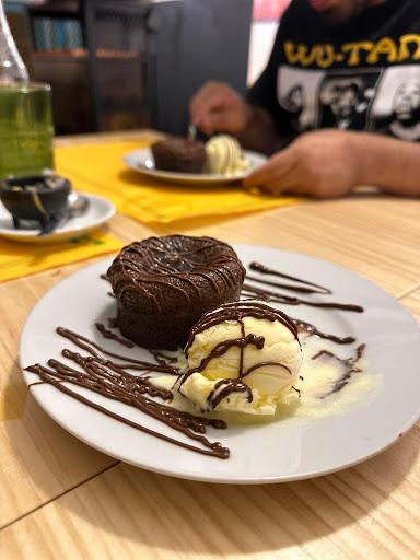 Hemos pedido: Media ración de nachos con carnitas para compartir entre dos a modo entrante, un taco de chorizo con una tortilla extra, un burrito de costilla BBQ y de postre un couland de chocolate y una mouse de Mango.