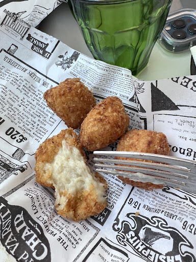 Read moreUnfortunately, our visit to this restaurant was disappointing. We ordered a burger, patatas bravas and the chicken croquettes. The burger was actually quite good – well-seasoned and properly cooked. However, the real issue was with the croquettes. When you see "chicken croquettes" on the menu, you expect them to contain at least some actual chicken. What we got instead were croquettes filled only with béchamel – not a trace of meat inside. When we politely brought this up with the staff, they insisted that there was chicken in them, even though it was clearly just béchamel. Instead of trying to resolve the situation or even offer a proper explanation, they laughed it off and said, "Of course there’s béchamel in them," in a rather dismissive tone.