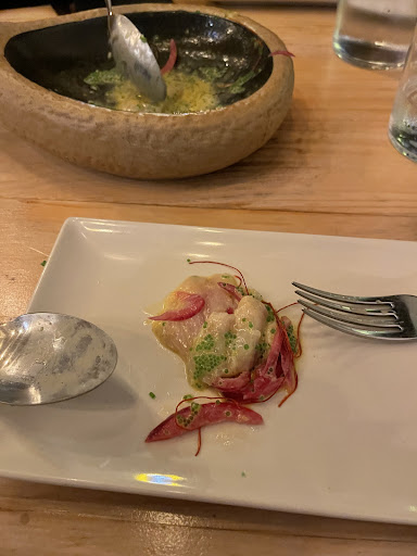 It took 30 mins for our sharing "ceviche" to arrive it was a few pieces of sliced fish... for 26 euro... at this point we've been in the restaurant for one hour and we are really hungry so we ask for some bread.:: we again had to ask for this bread from 2 waiters.. and it took 20 mins for them to bring bread...