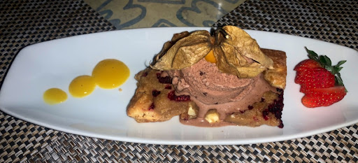 Dessert was homemade blondie brownie with white chocolate chips and berries. Topped with chocolate ice cream!