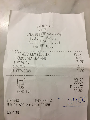 The food here was alright! An old woman was cooking. The service tho, was terrible! I never saw anything like this. First no one helped us when we were looking for a place and signaled the staff we wanted to eat here, so we needed to go inside and try to get their attention. A staff member said hello and then just left us. I needed to ask to people if we can sit outside. When we were ordering the lady wanted us to order some bread for €3. She didn't of course ask us if we want it. I know this kind of places so I asked her about it. The food arrived almost one hour after we ordered. That was already disappointing. The biggest problem was that the lady taking our order told me wrong things and later it seemed that she couldn't understand English at all! It looked a little bit faked as if she didn't wanted to help us. She told me that my dish included French fries so I wanted to change them to baked potatoes. I asked her if they will charge extra for it and she said no. Later when we wanted to pay the charges for it. It was not so big of a portion and the wanted €5.50 for it. For me it was to much. The only staff member that was able to talk English was angry at the situation and was aggressively making some drinks. She was done with the situation and didn't want to help us so we were left with some Spanish guys that had no idea what i was talking about. At the end we didn't pay for the extra portion. I find it very disturbing that they want the start a fight with you about it instead of fixing the problem. At the end of the day...