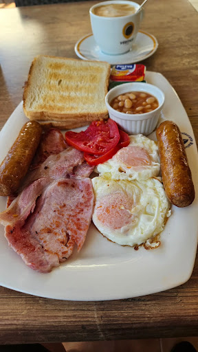 It's a really good full English. There were several options, and I went for option two. 2 eggs, 2 bacon, 2 sausage, 2 toast, tomatos, and beans. The bacon was the highlight good quality and thick cut. I remember when the bacon they served in Spain was transparent ribbons of meat dripping in oil. Not these, they'd grace any breakfast back in blighty. The sausages were not bad, English but probably the inexpensive frozen type. Certainly adequate on a holiday brekkie. The beans were spot on as was the tomato. The eggs were perfection. The toast was sliced white, the ketchup was local and there was genuine HP sauce as well. The serving staff were pleasant and attentive. I would definitely reccomend Marivent...